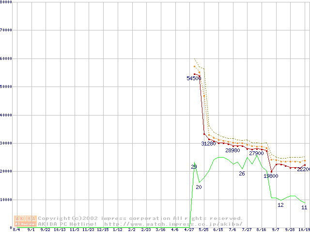 Pentium 4 2.26GHz リテールパッケージの価格推移