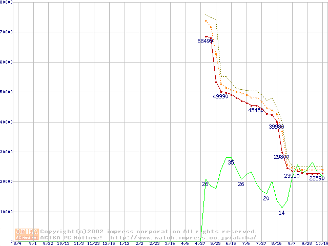 Pentium 4 2.4B GHz リテールパッケージの価格推移