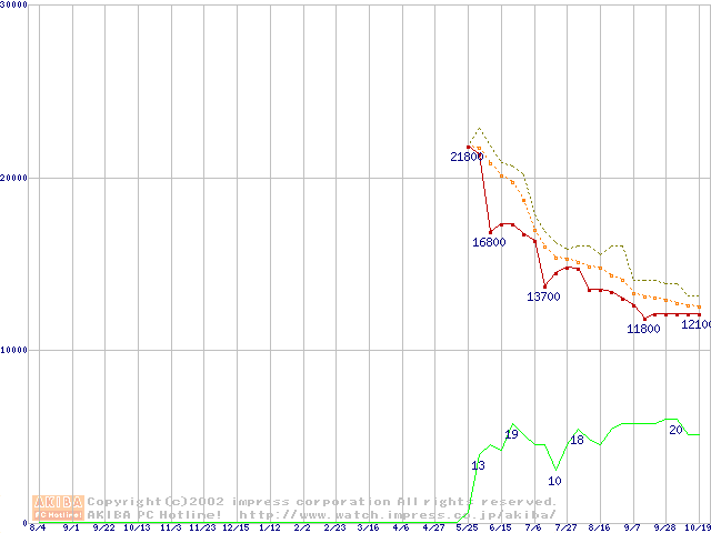 Travelstar 40GNX (9.5mm,5400rpm,UltraATA/100,8MB,FDB,20GB/Platter)の最安値推移