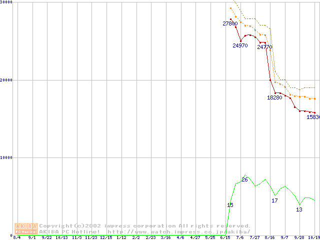 Socket A (OPGA,FSB 266MHz,L2 256KB,Thoroughbred)の最安値推移