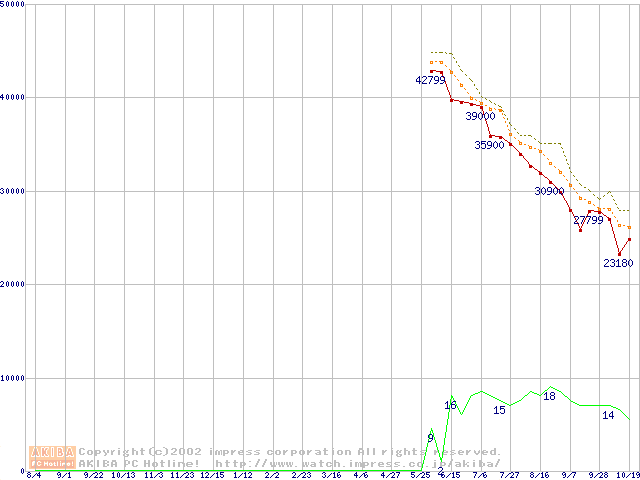 MKシリーズ (9.5mm,5400rpm,16MB,FDB,20GB/Platter)の最安値推移