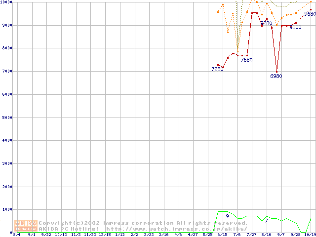 PC2100(DDR266) DDR SDRAM DIMM(CL 2.0) ECC対応 Registeredタイプの最安値推移