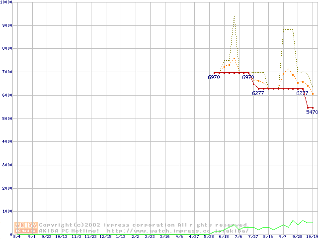 PC800-40 DRDRAM RIMM ECC対応の最安値推移