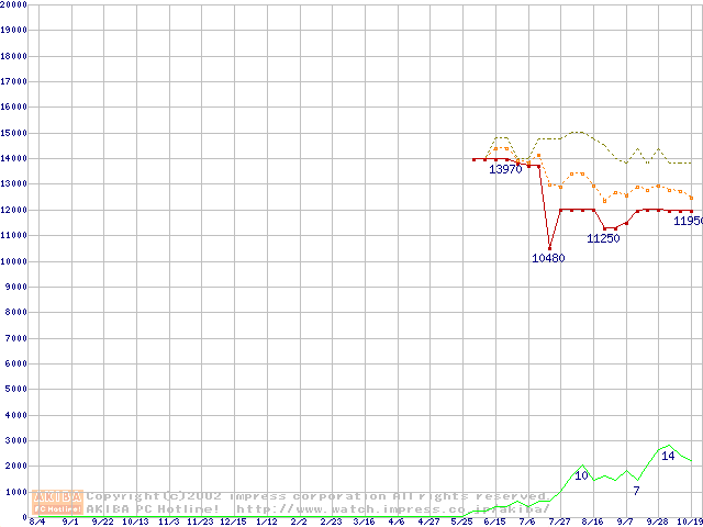 PC800-40 DRDRAM RIMM ECC対応の最安値推移