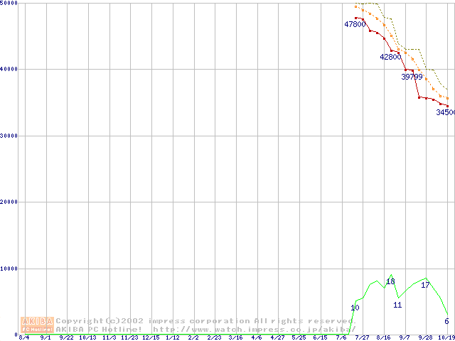 2.5インチHDD主要製品(最安値3万円以上)の最安値推移