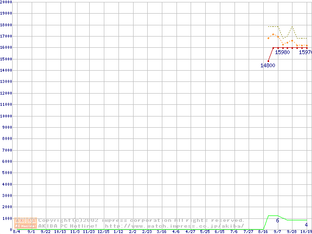 Socket A (OPGA,FSB 200MHz,L2 256KB)の最安値推移