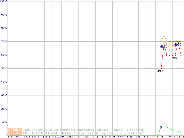 Socket A (Spitfire,PGA,FSB 200MHz,L2 64KB,1.4V)の最安値推移