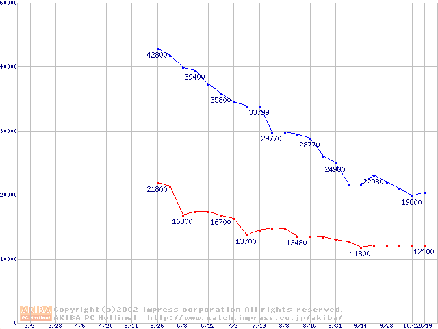 | [↑前グラフ]: | Travelstar 48GH (12.5mm,5400rpm,UltraATA/100,2MB,FDB)の最安値推移 |