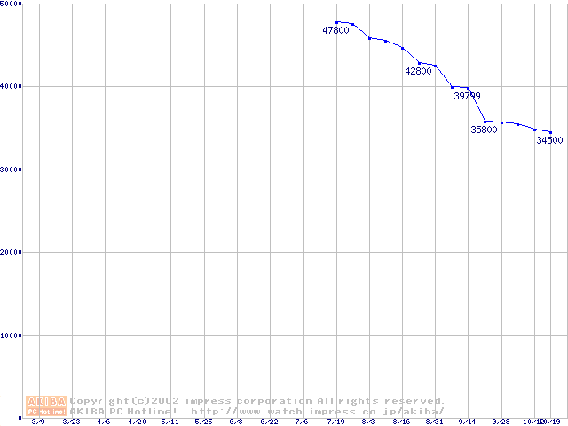 | [↑前グラフ]: | MKシリーズ (9.5mm,5400rpm,16MB,FDB,20GB/Platter)の最安値推移 |