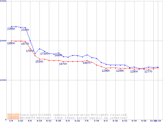 | [↑前グラフ]: | Socket 370 (FC-PGA2,FSB 133MHz,L2 512KB)の最安値推移 |