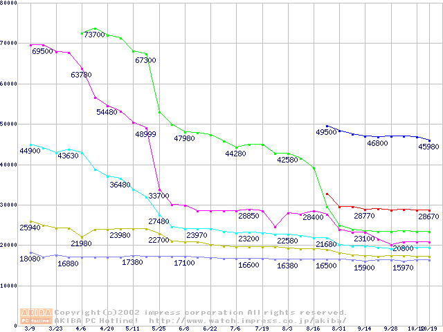 | [↑前グラフ]: | Socket 478 (micro-PGA,FSB 533MHz,L2 512KB,Northwood)の最安値推移 |