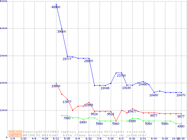 | [↑前グラフ]: | PC3000(DDR366) DDR SDRAM DIMMの最安値推移 |