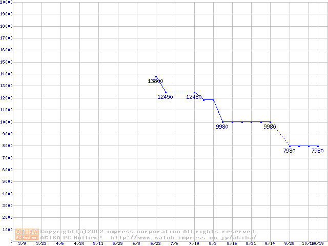 | [↑前グラフ]: | PC800-40 DRDRAM RIMMの最安値推移 |