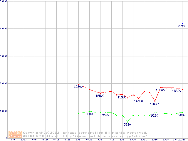 | [↑前グラフ]: | PC800-45 DRDRAM RIMMの最安値推移 |