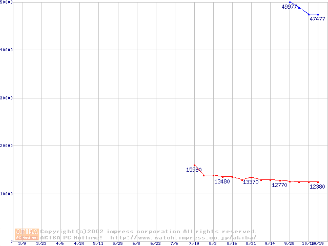 | [↓次グラフ]: | PC800-40 DRDRAM RIMM ECC対応の最安値推移 |