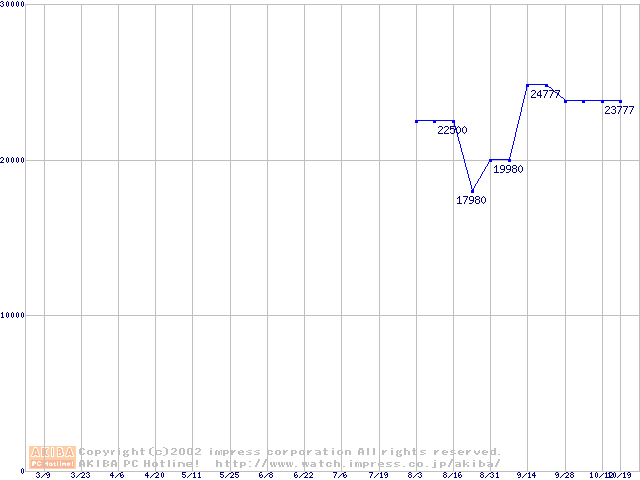| [↑前グラフ]: | PC800-45 DRDRAM RIMM ECC対応の最安値推移 |