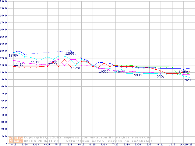 | [↑前グラフ]: | 2.5インチHDD 10GB~20GB未満(9.5mm厚)の最安値推移 |