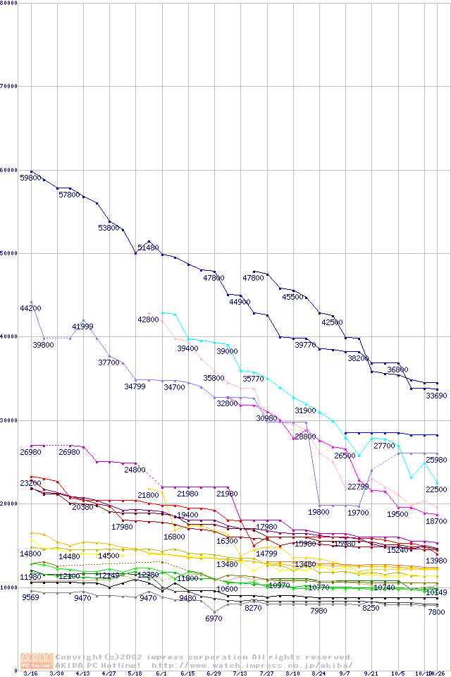 2.5インチHDD 60GB~80GB未満(12.5mm厚)の最安値推移