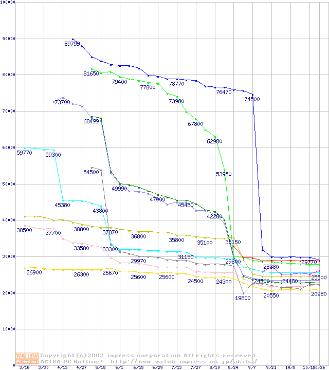 CPU主要製品(最安値2万円~3万円未満)の最安値推移