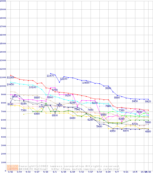 Socket 370・FSB 100MHzの最安値推移