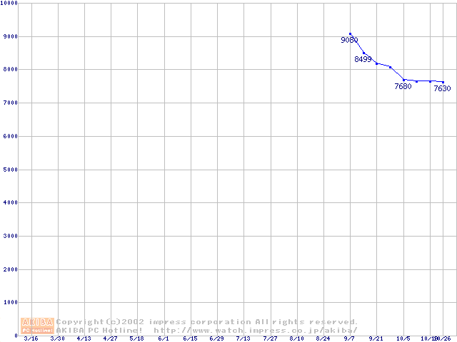 | [↑前グラフ]: | HDD 20GB~30GB未満(7200rpmクラス)の最安値推移 |