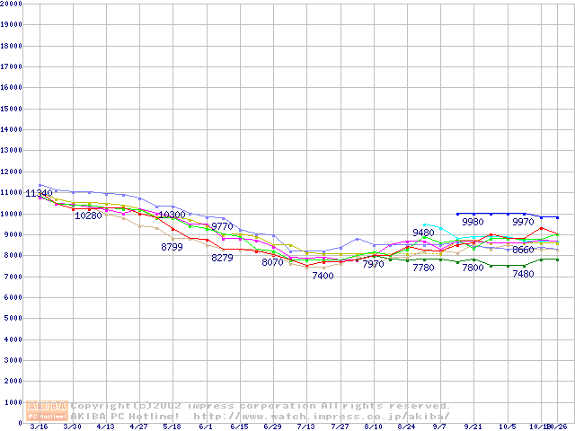 | [↑前グラフ]: | HDD 30GB~40GB未満(7200rpmクラス)の最安値推移 |