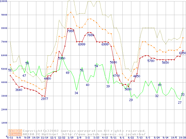 メモリ主要製品(最安値5千円~1万円未満)の最安値推移