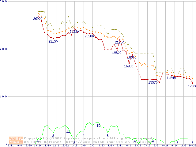 Socket A (OPGA,FSB 266MHz,L2 256KB,Palomino)の最安値推移