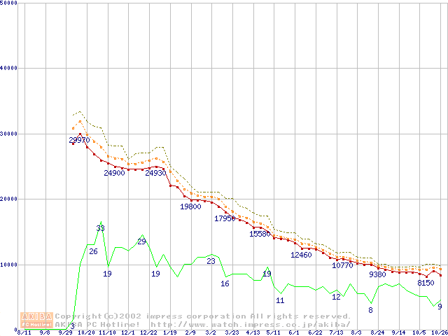 Socket A (OPGA,FSB 266MHz,L2 256KB,Palomino)の最安値推移