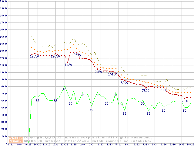 Celeron 1.20GHz FC-PGA2 リテールパッケージの価格推移