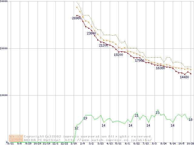 MKシリーズ (9.5mm,4200rpm,2MB,FDB,20GB/Platter)の最安値推移