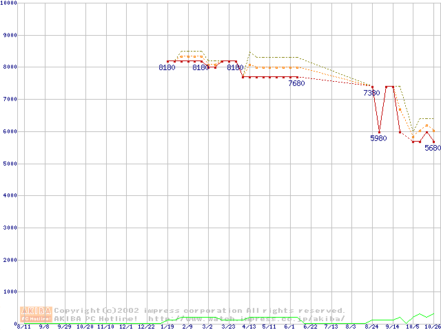 Socket 370 (PGA,FSB 133MHz,L2 64KB)の最安値推移