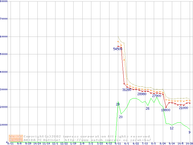 Pentium 4 2.26GHz リテールパッケージの価格推移