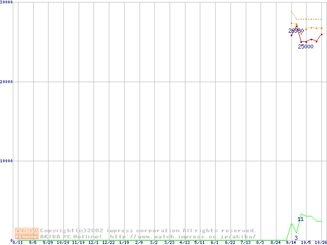 Socket A (OPGA,FSB 266MHz,L2 256KB,Palomino)の最安値推移