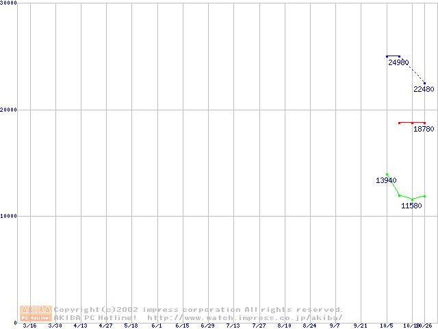 | [↑前グラフ]: | Deskstar 180GXP (7200rpm,8MB,UltraATA/100,FDB)の最安値推移 |