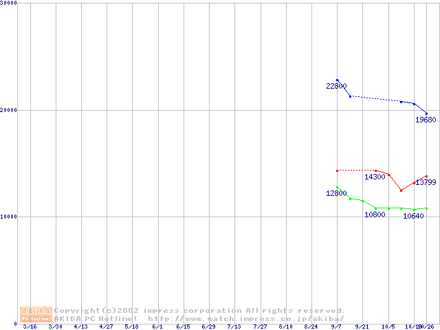 | [↓次グラフ]: | DiamondMax Plus 8 (7200rpm,2MB,UltraATA/133,FDB)の最安値推移 |