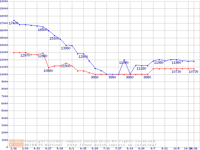 | [↓次グラフ]: | WD Protege (5400rpm,UltraATA/100)の最安値推移 |
