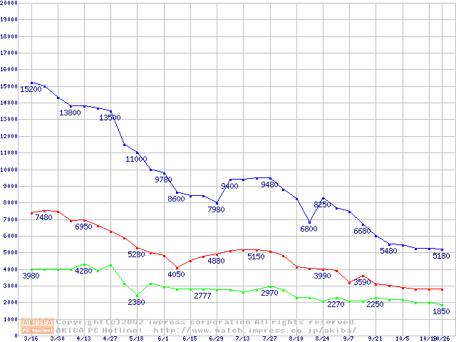 | [↑前グラフ]: | PC133 SDRAM DIMM CasLatency=3の最安値推移 |