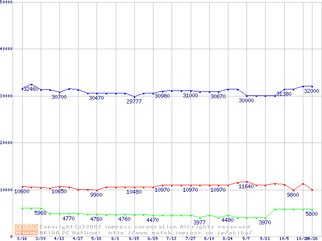 | [↓次グラフ]: | PC1066 DRDRAM RIMM ECC対応の最安値推移 |