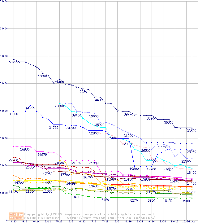 2.5インチHDD主要製品の最安値推移