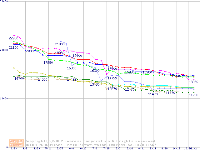 | [↓次グラフ]: | 2.5インチHDD主要製品(最安値1万5千円~2万円未満)の最安値推移 |