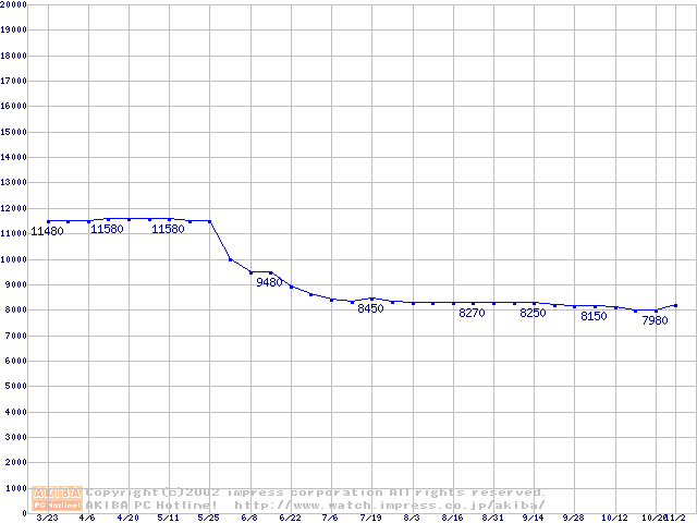 | [↓次グラフ]: | 2.5インチHDD 20GB~30GB未満(9.5mm厚)の最安値推移 |
