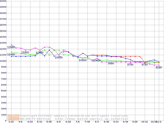 | [↑前グラフ]: | 2.5インチHDD 10GB~20GB未満(9.5mm厚)の最安値推移 |