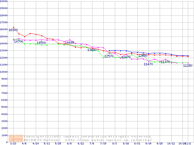| [↑前グラフ]: | 2.5インチHDD 20GB~30GB未満(9.5mm厚)の最安値推移 |