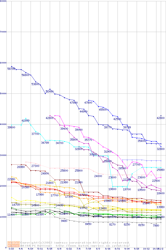 2.5インチHDD 60GB~80GB未満(12.5mm厚)の最安値推移