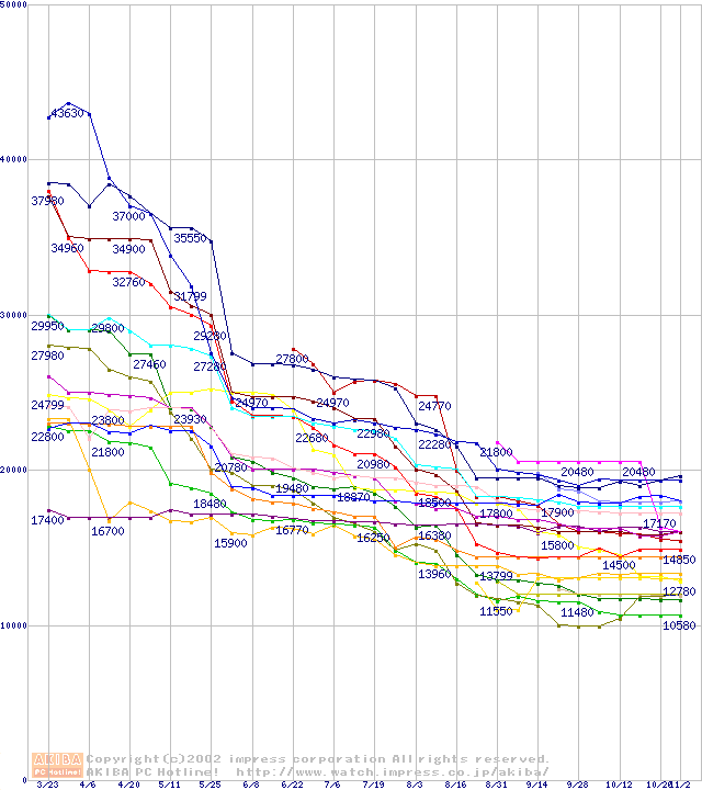 CPU主要製品(最安値2万円~3万円未満)の最安値推移