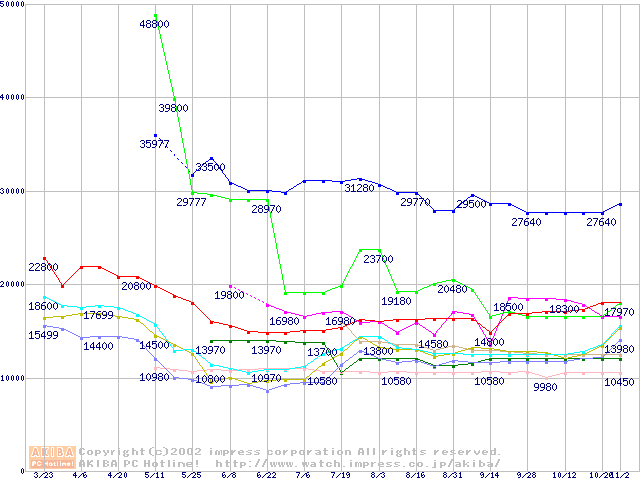メモリ主要製品の最安値推移