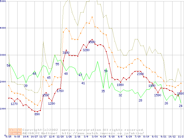 メモリ主要製品の最安値推移