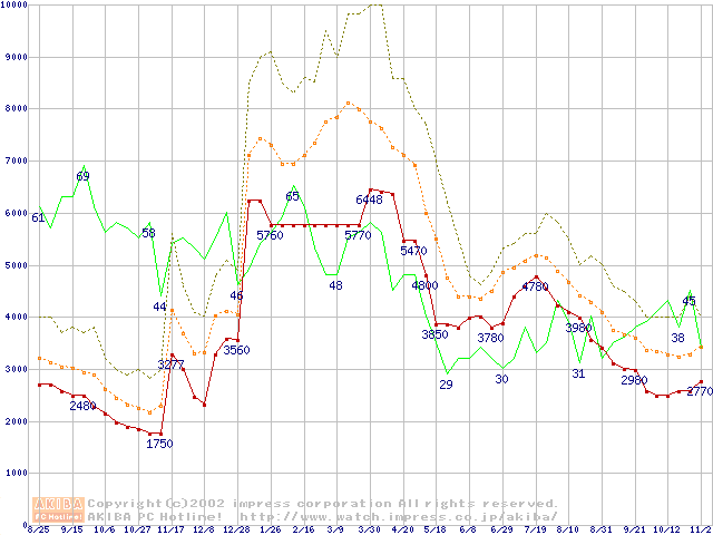 PC133 SDRAM DIMM CasLatency=3の最安値推移