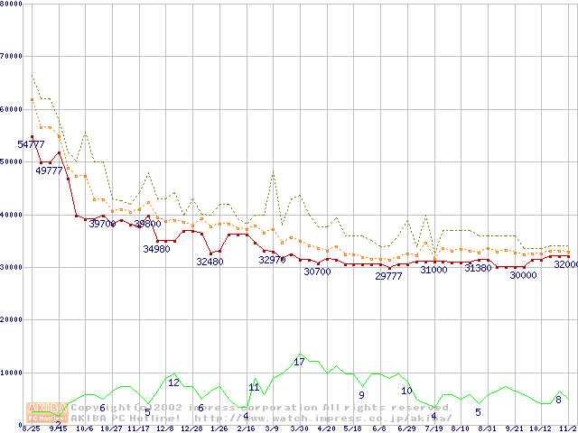 PC800-45 DRDRAM RIMM ECC対応の最安値推移